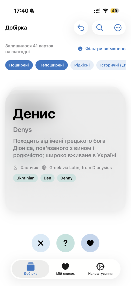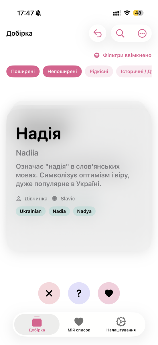 Зберігайте фаворитів, залишайте варіанти на потім і пропускайте імена, які не підходять вашій родині.