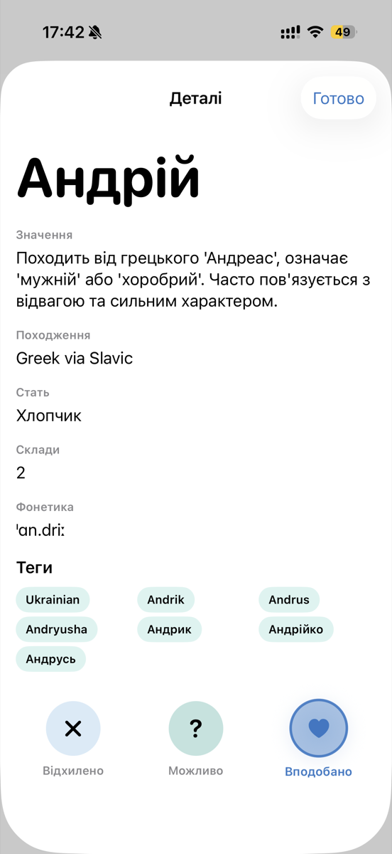 NameAtlas допомагає парі переглядати імена, зберігати фаворитів, порівнювати реакції та швидше звужувати короткий список. Додаток створений для iPhone і вже підтримує англійську та українську мови.